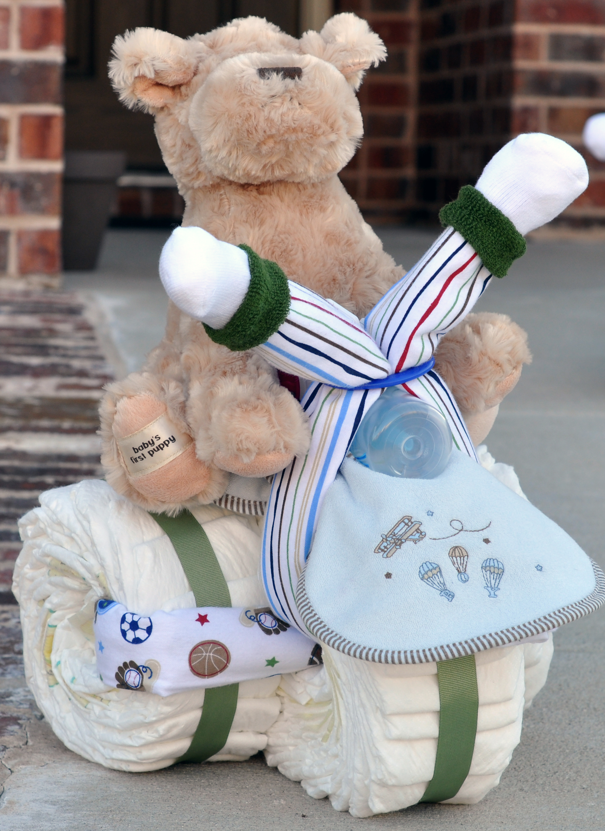 Je vous ai trouvé une petite sélection sur les sites anglophones car le concept est beaucoup plus répandu chez eux. C’est l’occasion d’offrir [des couches eh oui !] mais aussi des petits produits de puériculture type biberon, thermomètre, brosse à cheveux pour bébé, ou même des petits vêtements comme des bodys, des chaussettes fantaisies, etc …