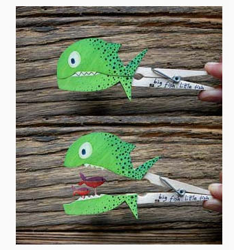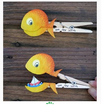 Découper les formes des poissons et autres requins que vous souhaitez créer (vive l’imagination des enfants !) dans du carton épais puis coller les avec un pistolets à colle sur les pinces à linge en ayant pris de soin de bien vérifier les réglages 😉