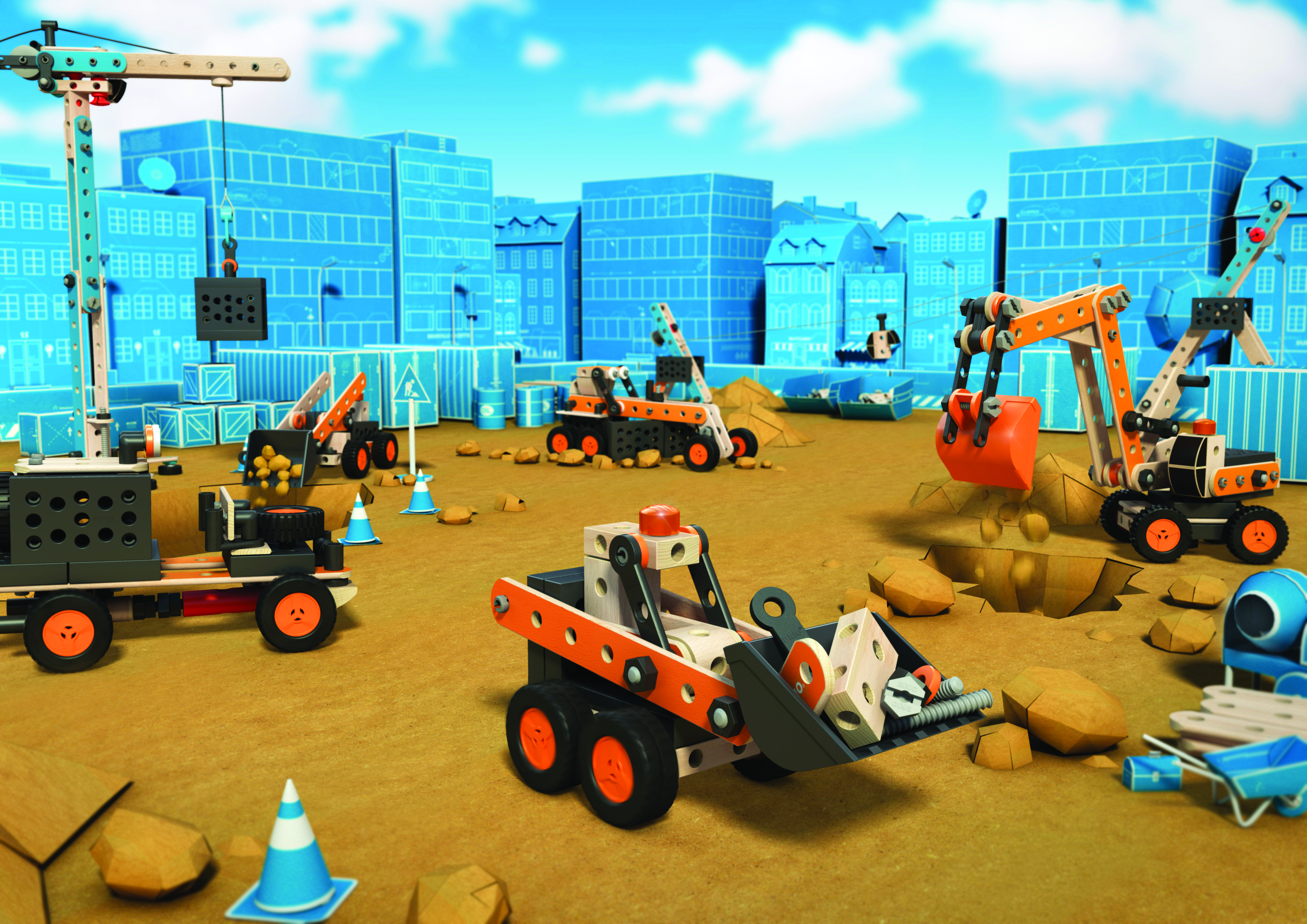 Cette gamme est composée d’engins de chantier, de véhicules, d’avions et d’hélicoptères ainsi que de coffrets de construction !