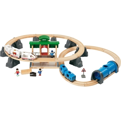 Avec bien sur un circuit de train BRIO, une belle grue, des fruits à découper, des Kapla, de la pêche à la ligne, jeu Pallina, une belle draisienne, le circuit du Far West et puis encore et toujours des trains BRIO 🙂