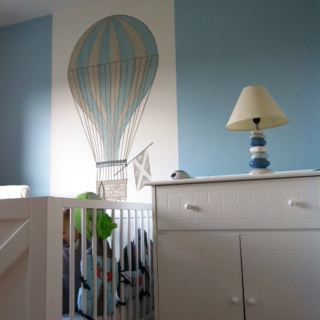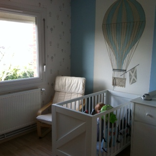 J’aime beaucoup les chambres de vos garçons ! très joli le papier peint avec la montgolfière!