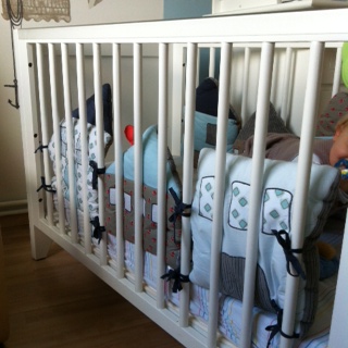 – le tour de lit reçu en cadeau de naissance que j’adore !!!! (acheté sur Vertbaudet) Il est de plus très pratique lorsque l’on a un lit qui a des panneaux pleins à la tête et aux pieds !