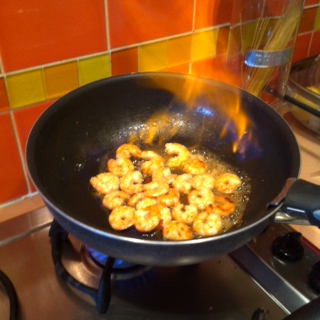 Je m’apprêtais à faire des nouilles chinoises /crevettes/curry. Et en faisant revenir mes crevettes dans la poêle m’est venu l’idée de les flambée au whisky. Il me semblait bien que ça se faisait et ton poste m’a conforté dans l’idée. J’y ai quand même rajouté du curry et du persil… Une tueries !!!