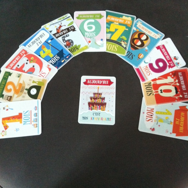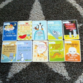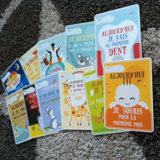 Il s’agit d’un kit composé de 26 jolies cartes dont chacune correspond à un moment important dans la vie de bébé 🙂