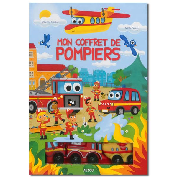 Il comporte un beau livre intitulé « Mon premier livre de pompiers » mais aussi un plateau pour y faire rouler les 3 petits engins présents également dans ce magnifique coffret.