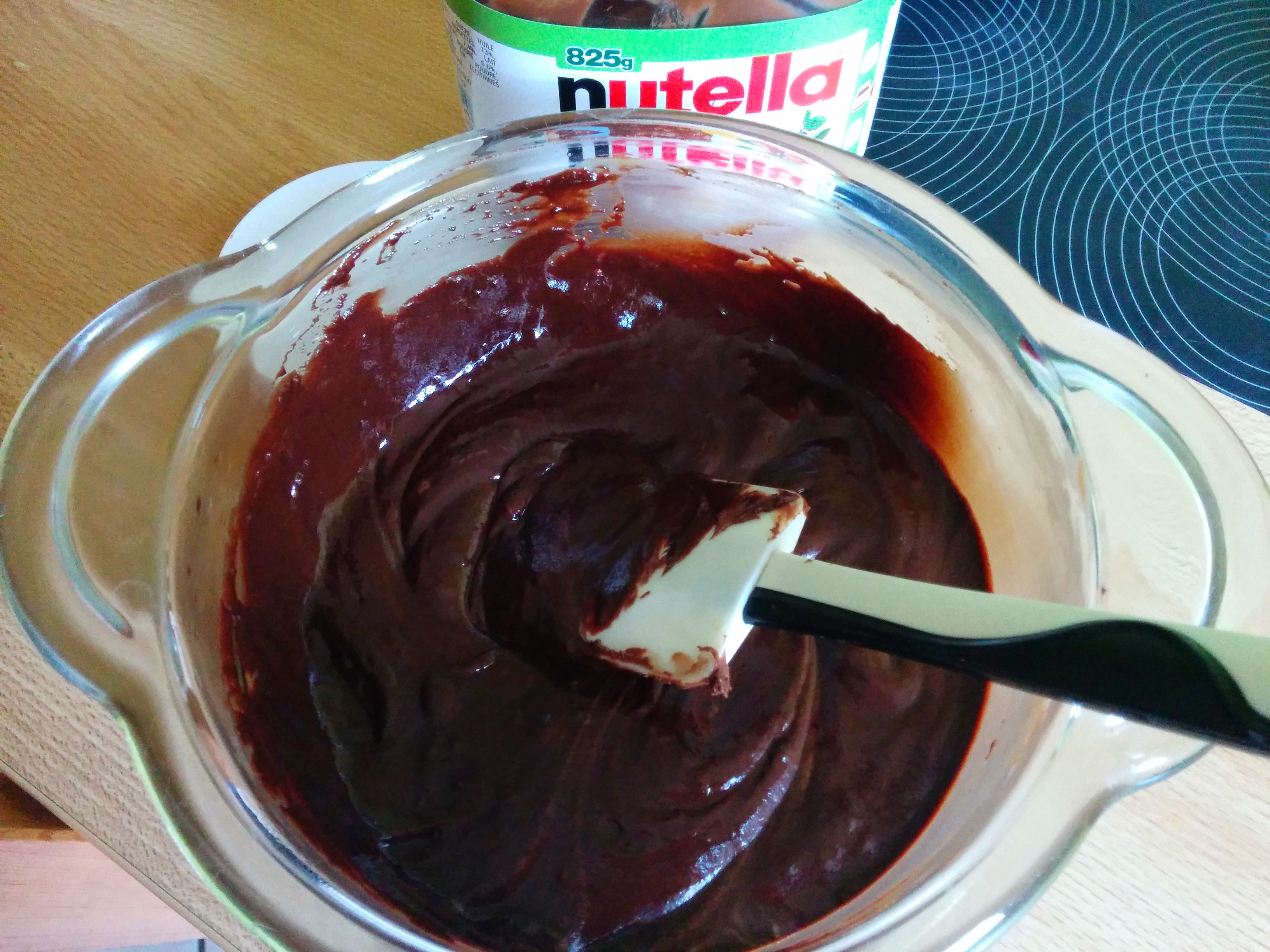 J’ai ensuite préparé mon glaçage en mélangeant du Nutella avec du chocolat noir pâtissier avec un peu de lait pour attendrir le tout.