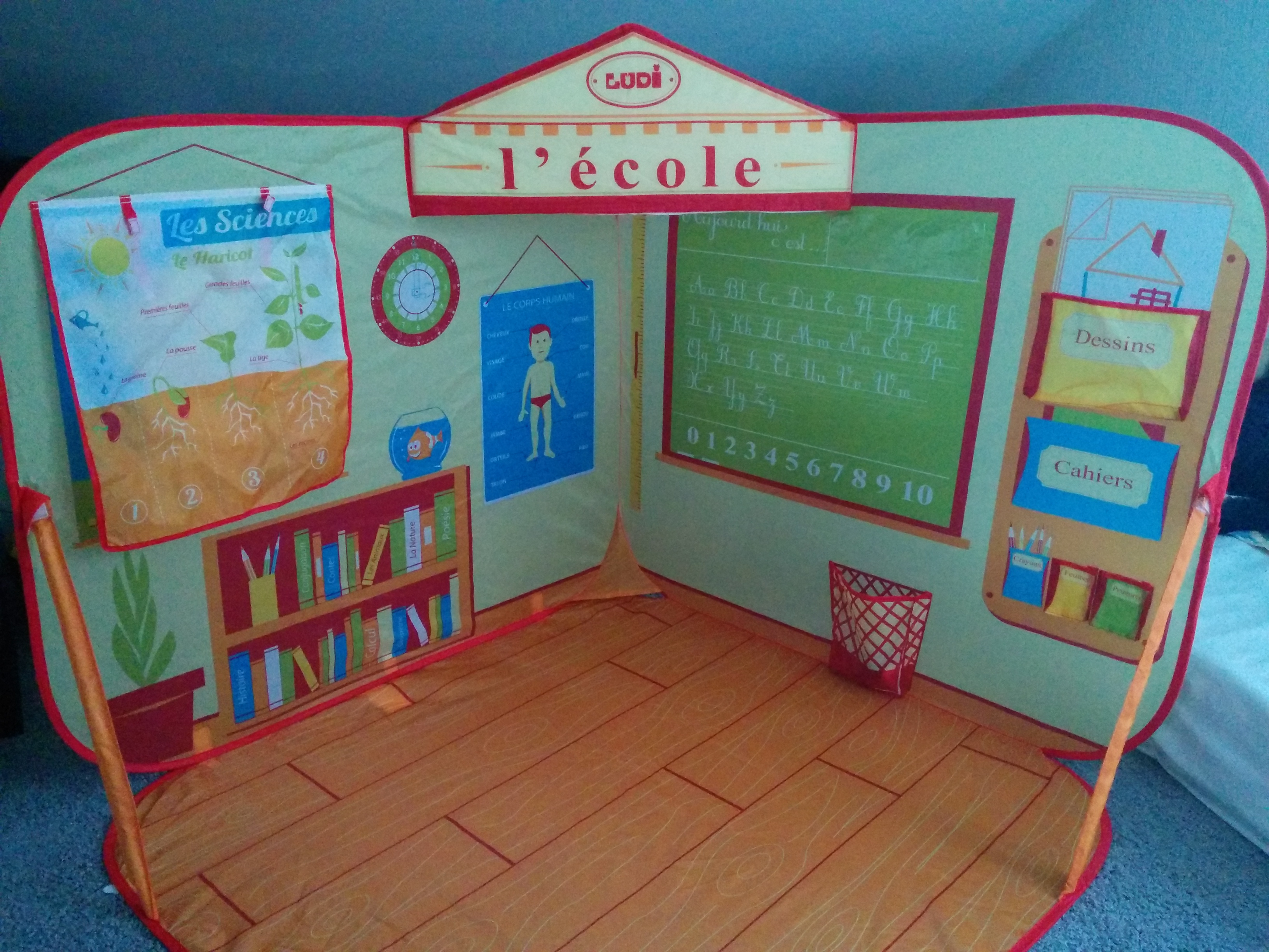 Lorsque je lui ai sorti la tente pop up de Ludi « je joue à l’école », il était (comme tu t’en doutes 🙂 ) enchanté !!!