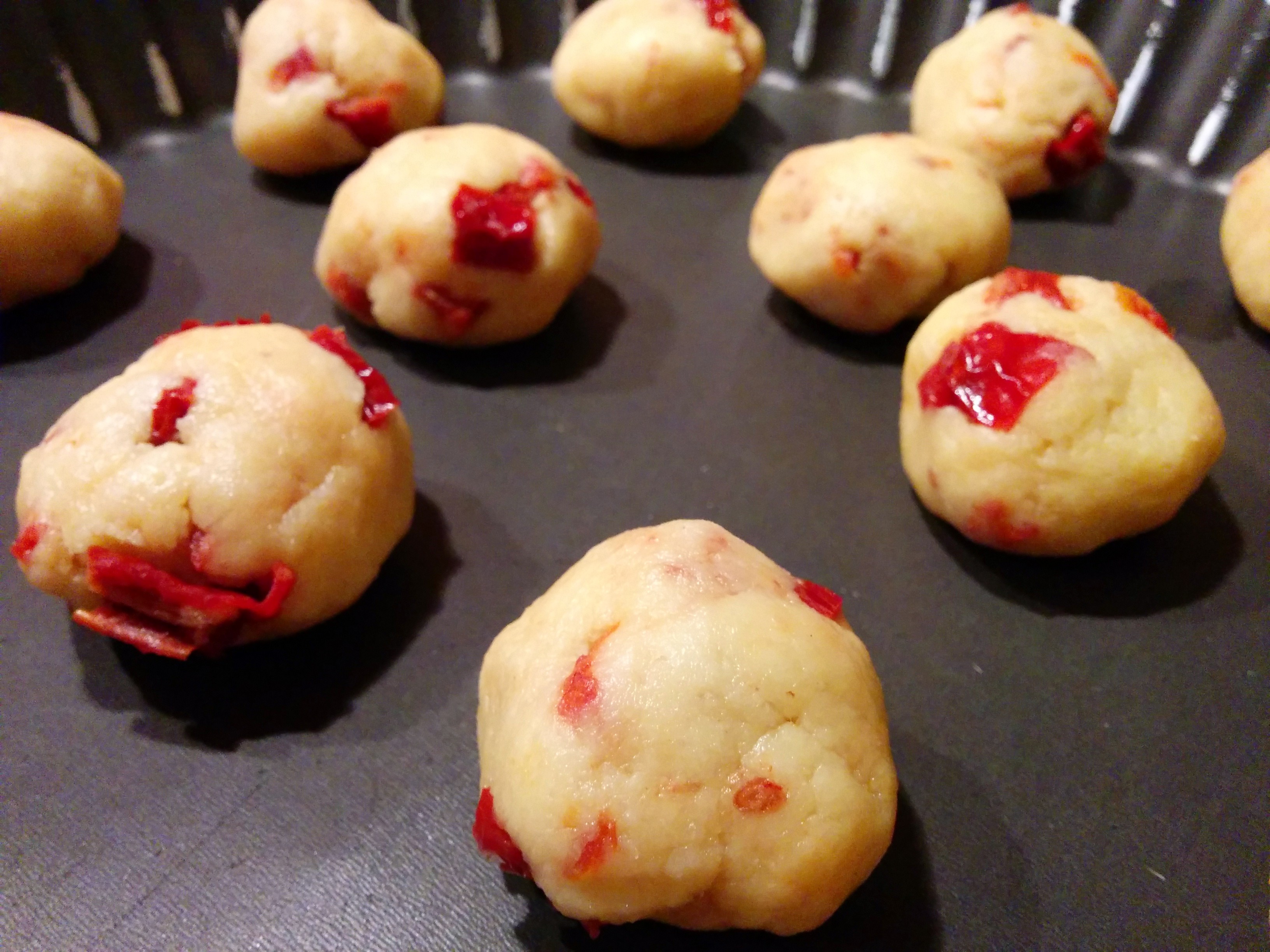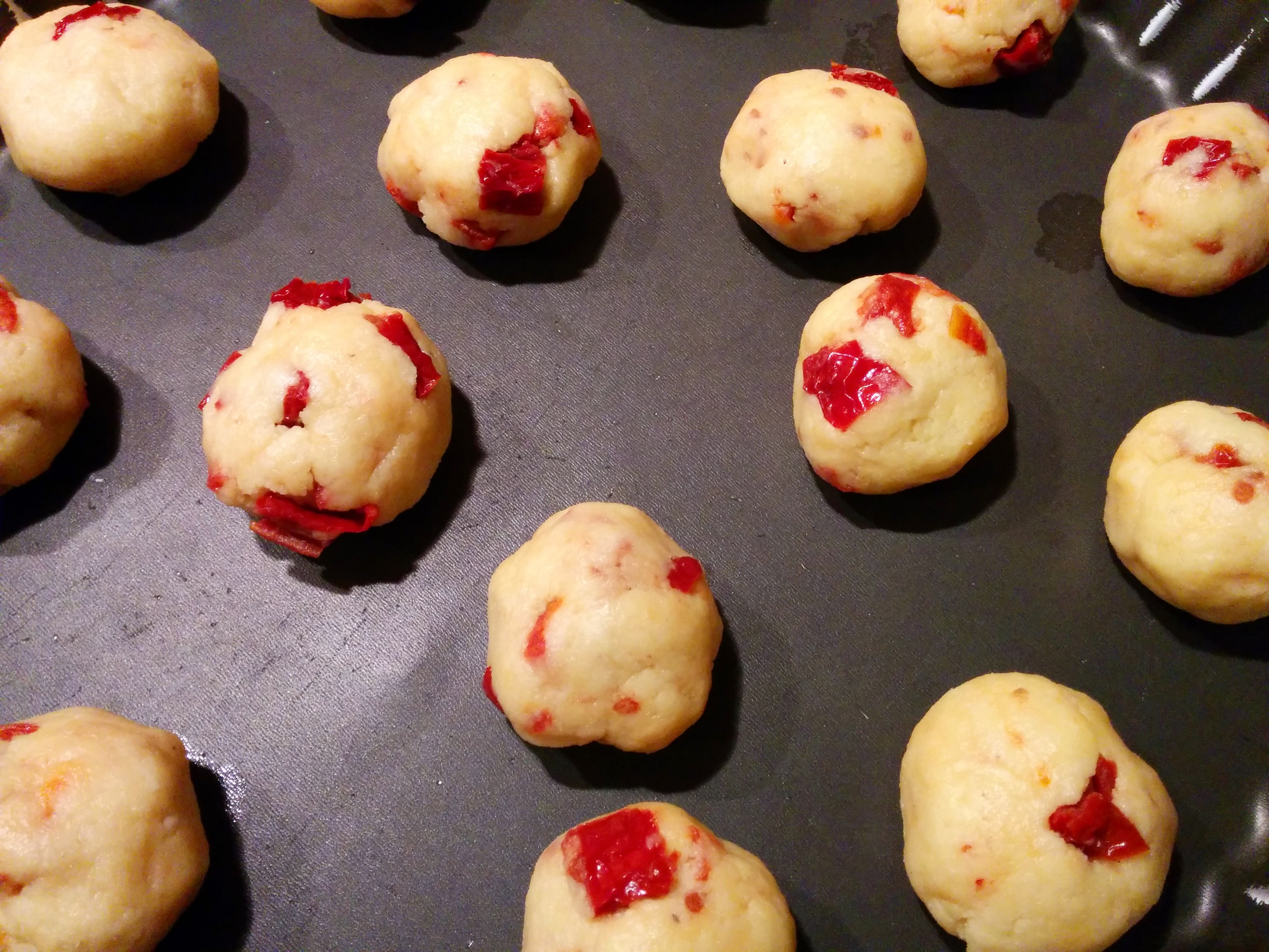 Pour Noël, j’ai réalisé des cookies salés aux tomates séchées et au chorizo, pour proposer à l’apéritif.