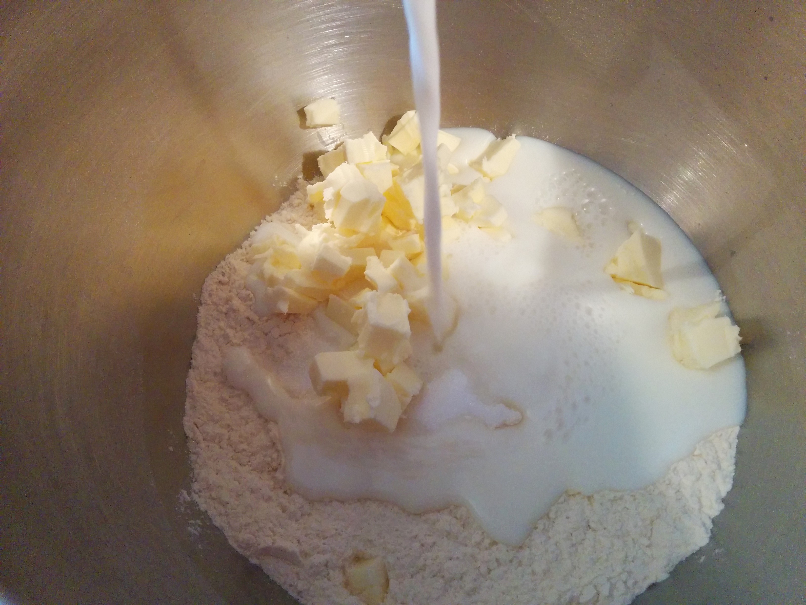 Dans un fond de verre d’eau tiède / chaude, mélangez la levure avant d’y ajouter le lait tiédi.