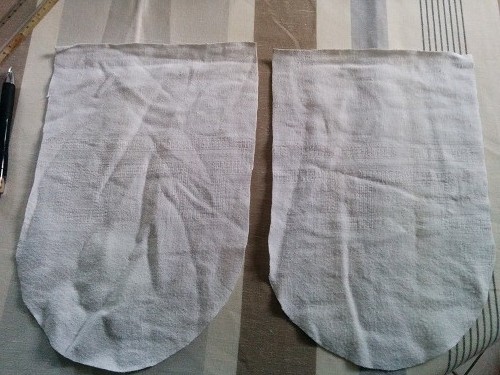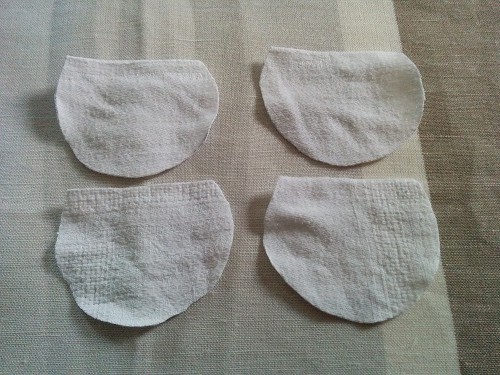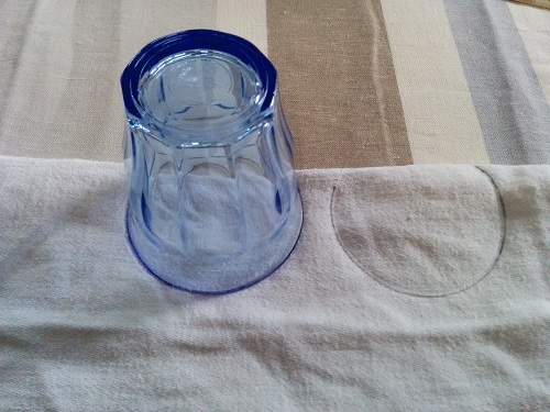 1/ Commencer par tracer et découper vos différentes parties : 2 pour le corps et 4 pour les oreilles. Pour la forme arrondie du corps, je me suis servie d’un saladier et d’un verre pour les oreilles.
