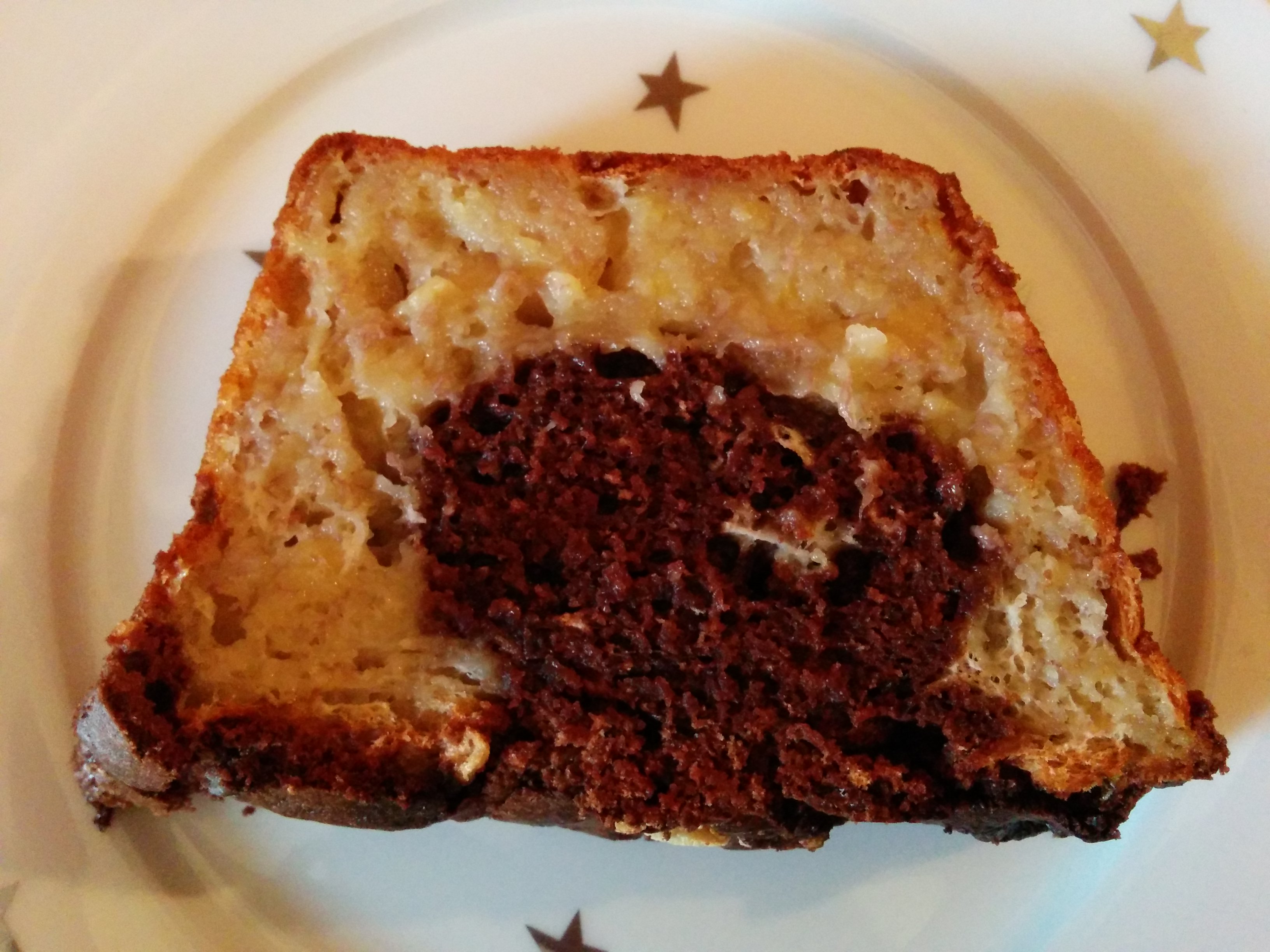 Cette semaine, c’est un cake marbré chocolat / banane que je vous propose.