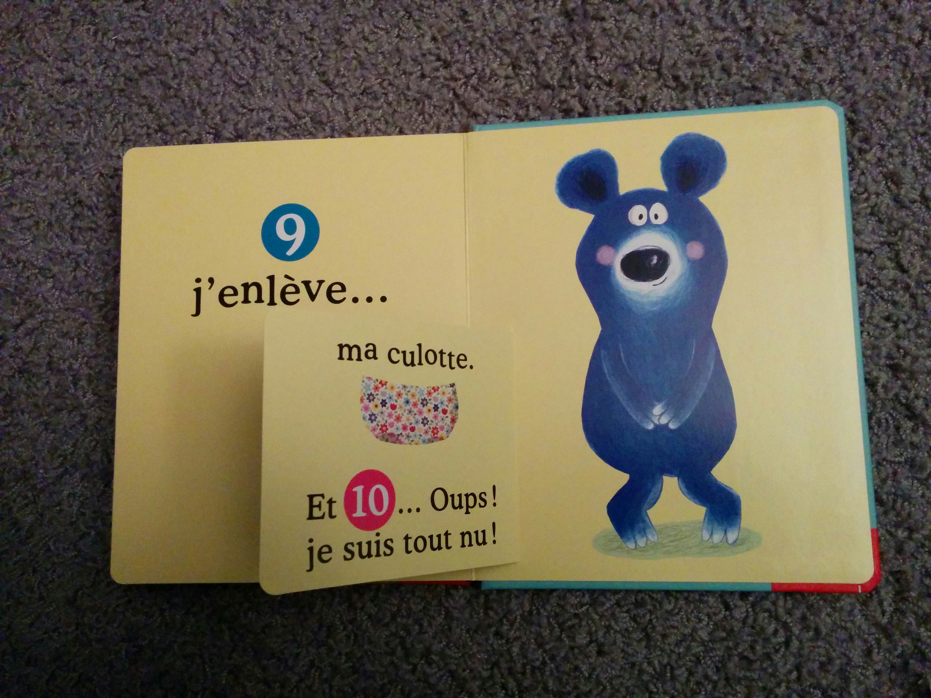 Un drôle de livre plein de flaps pour aider Petit Ours à se déshabiller, tout en apprenant à compter jusqu’à 10 🙂 De quoi l’aider à faire ensuite comme un grand …
