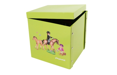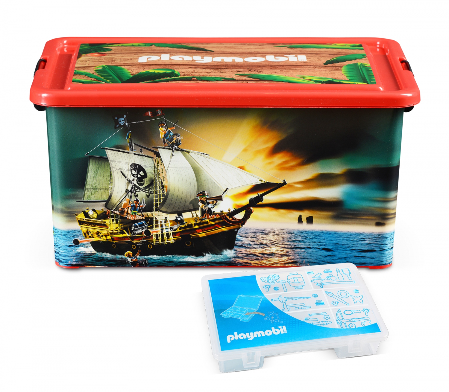 La réponse vient de chez Playmobil, qui propose à la vente des boîtes de rangement joliment décorées, de taille XL et comprenant des compartiments afin d’y ranger les plus petites pièces.