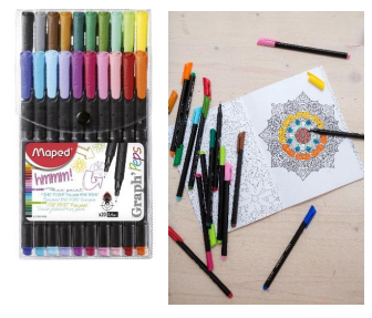 Mais les parents peuvent se mettre aussi au coloriage avec Graph’Peps : des feutres d’écriture de précision à pointe douce.