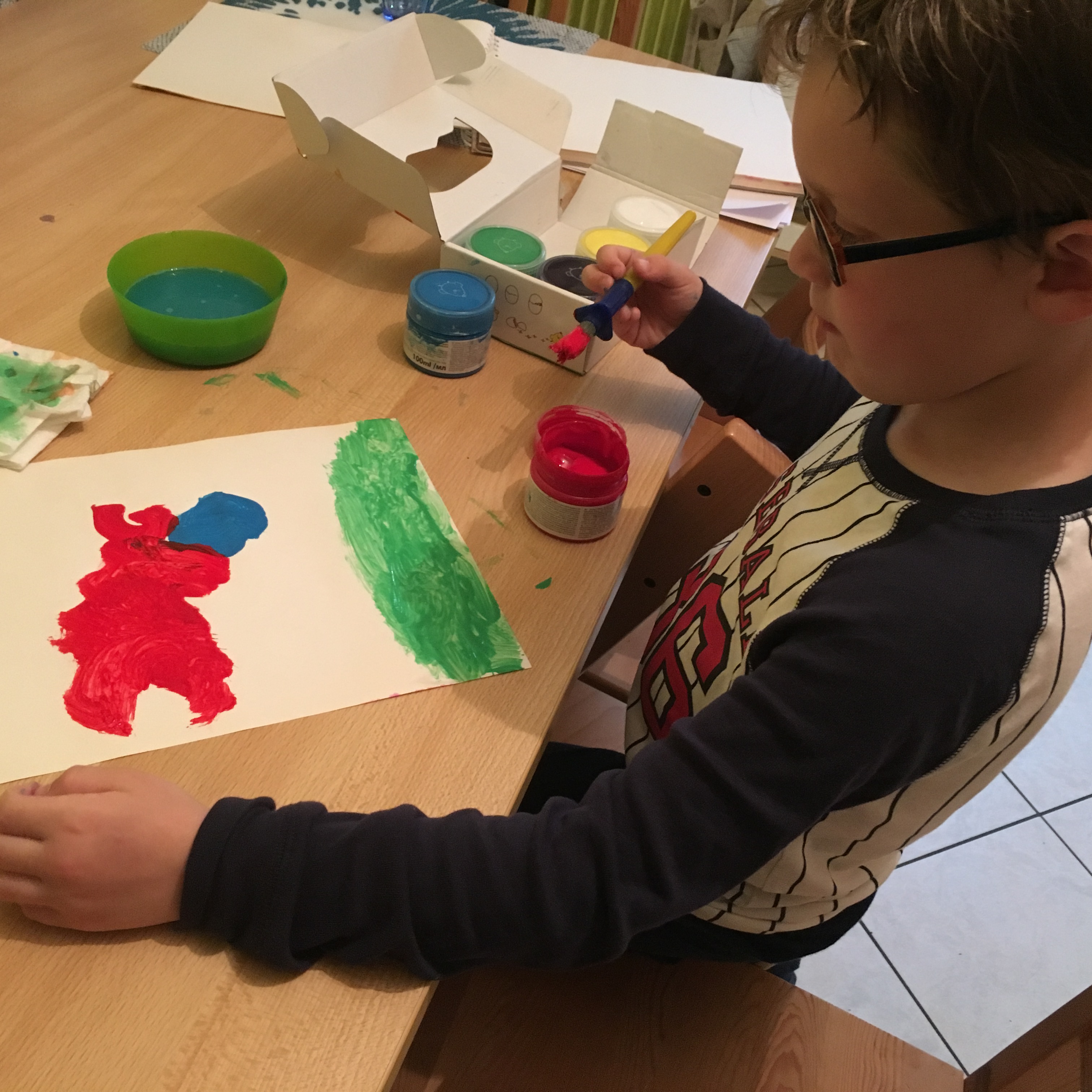 Les pinceaux parfaitement adaptés à leurs petites mains, les rouleaux et tampons mousse leur ont permis de se mettre à l’Art avec un grand A.