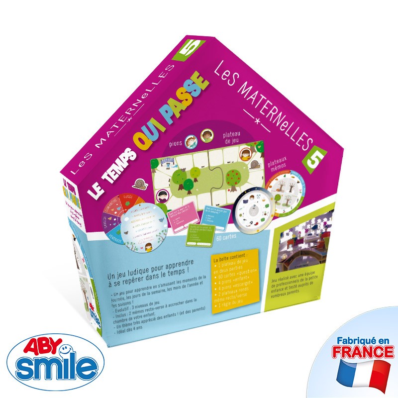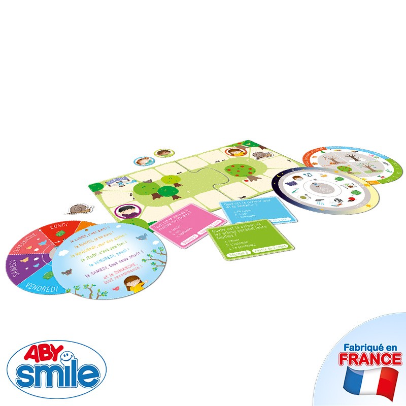 Ce kit évolutif permet aux petits bouts de chou d’appréhender graduellement les notions temporelles avec 3 niveaux de jeu. Le premier niveau s’intéresse aux différents moments de la journée, avec par exemple des questions sur le thème du petit-déjeuner, du goûter, du moment où l’on doit se brosser les dents jusqu’au coucher. L’enfant pourra ensuite aborder les jours de la semaine, puis les mois et enfin les saisons.