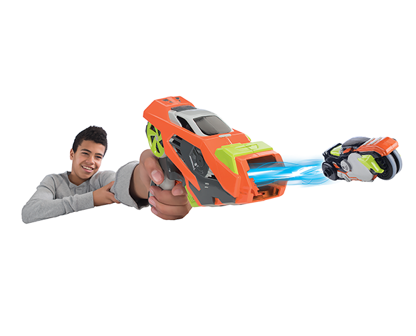 Il s’agit en fait d’un appareil, genre pistolet, qui expulse deux voitures à pleine vitesse pour réaliser des figures incroyables.