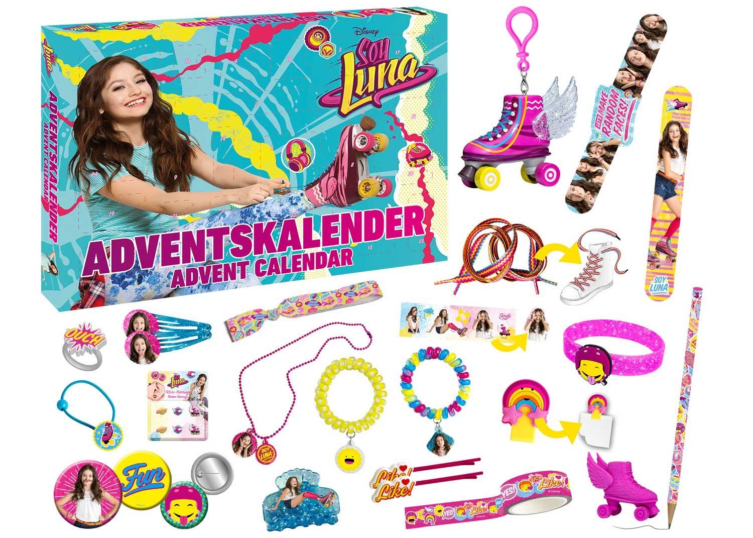 24 incroyables surprises pour les filles avec des amulettes, de jolies figurines, des porte-clés, des articles de papeterie et pleins d’autres surprises à découvrir aux couleurs de Soy Luna de Disney